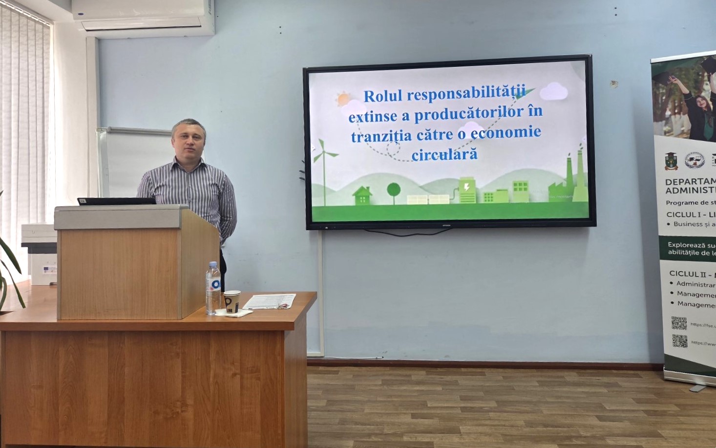 Vitalie Toma, reprezentantul MoldControl, a participat la masa rotundă „Sustenabilitate și transformare ecologică: contribuția proprietății intelectuale la economia verde”, organizată de Facultatea de Științe Economice a Universității de Stat din Moldova. Alături de experți, antreprenori și cercetători, el a vorbit despre rolul important al producătorilor în tranziția către o economie circulară și despre angajamentul MoldControl pentru o gestionare mai responsabilă a deșeurilor în Republica Moldova.
